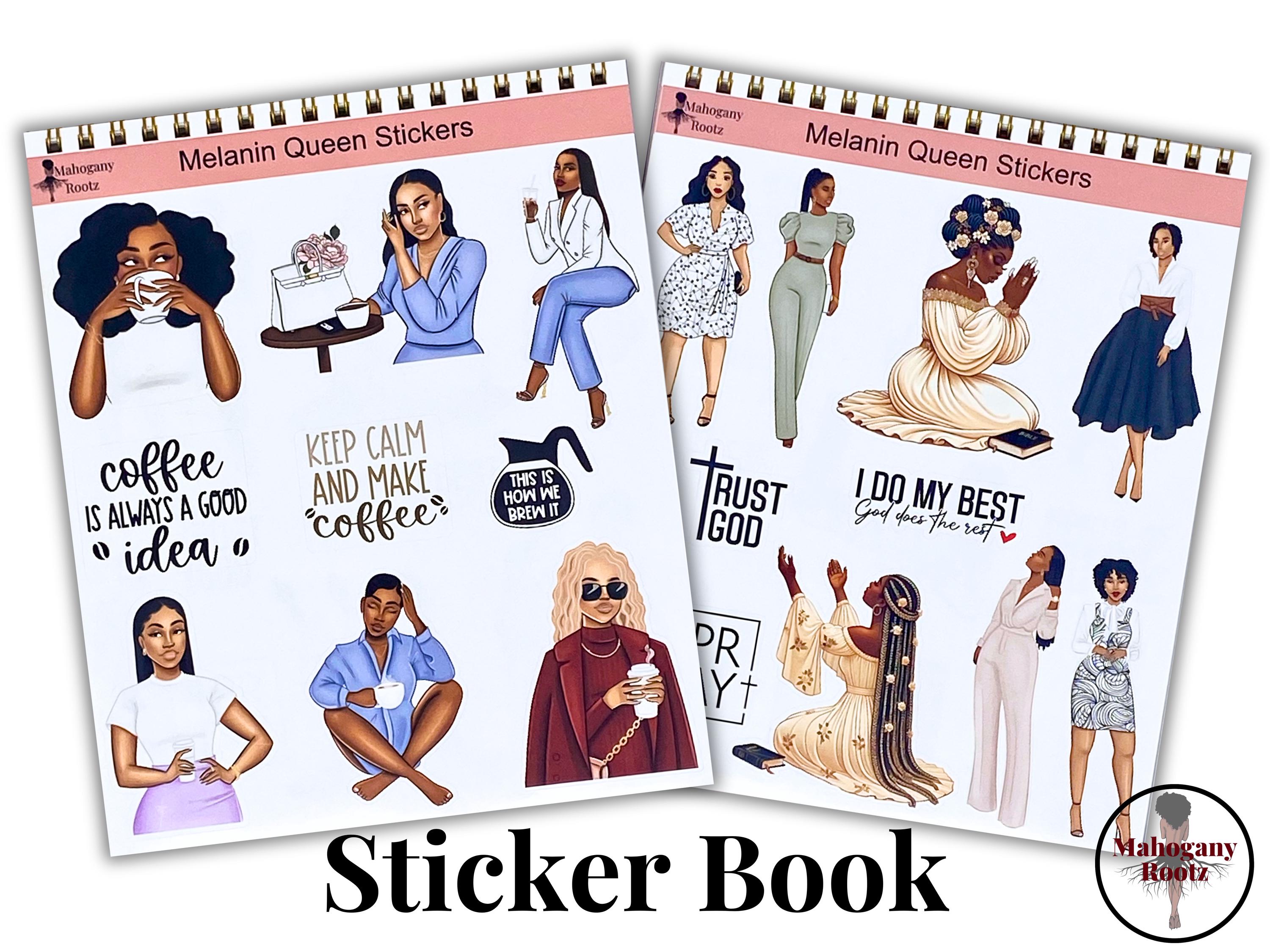 Hey Sis! Are you constantly searching for stickers that look like you? We got you! This is an African American Melanin Queen Sticker Book designed by us, for us! Have fun decorating your planners with these Afrocentric stickers that represent you and all of your black girl magic! There are 20 sheets in total! Use them for planners, journals, laptop decals, notebooks, vision boards and so much more all while rocking your brown girl style!