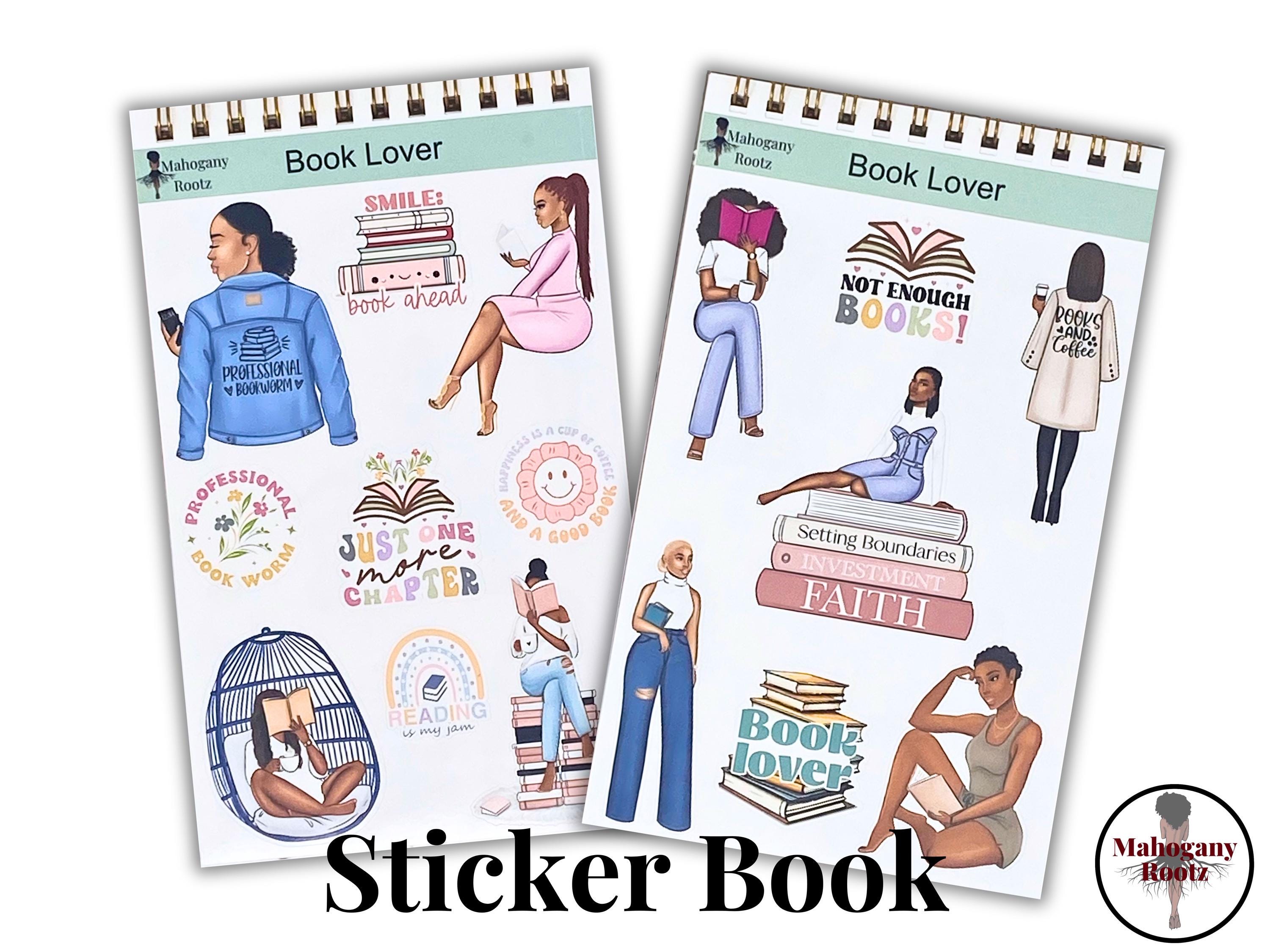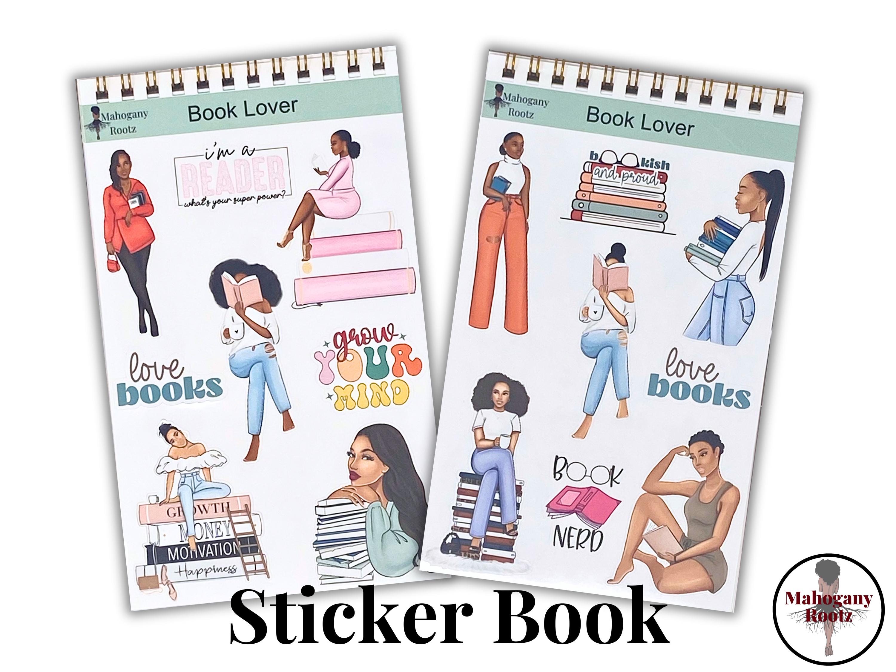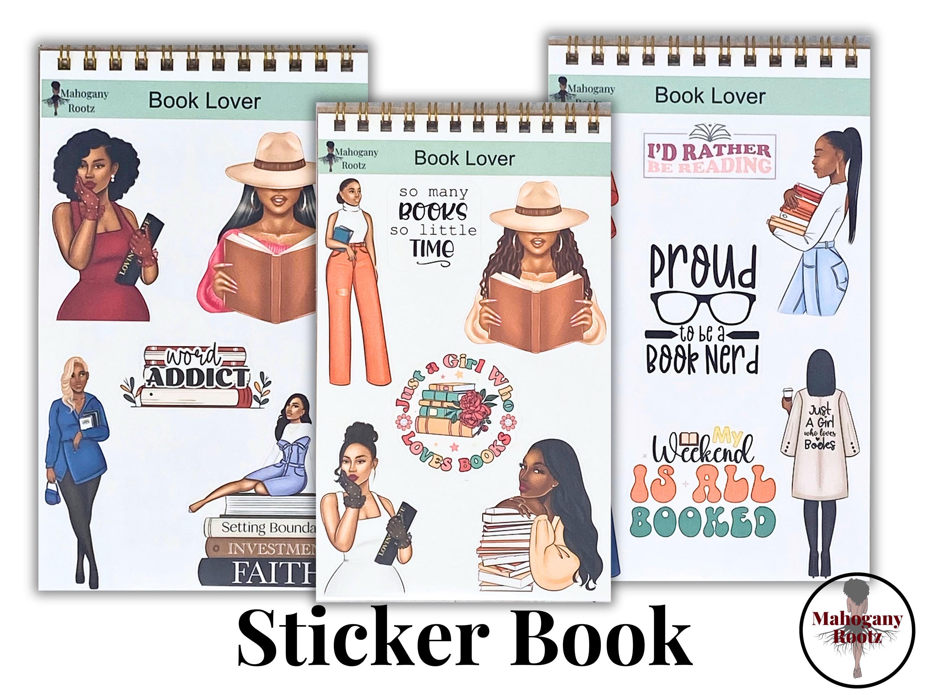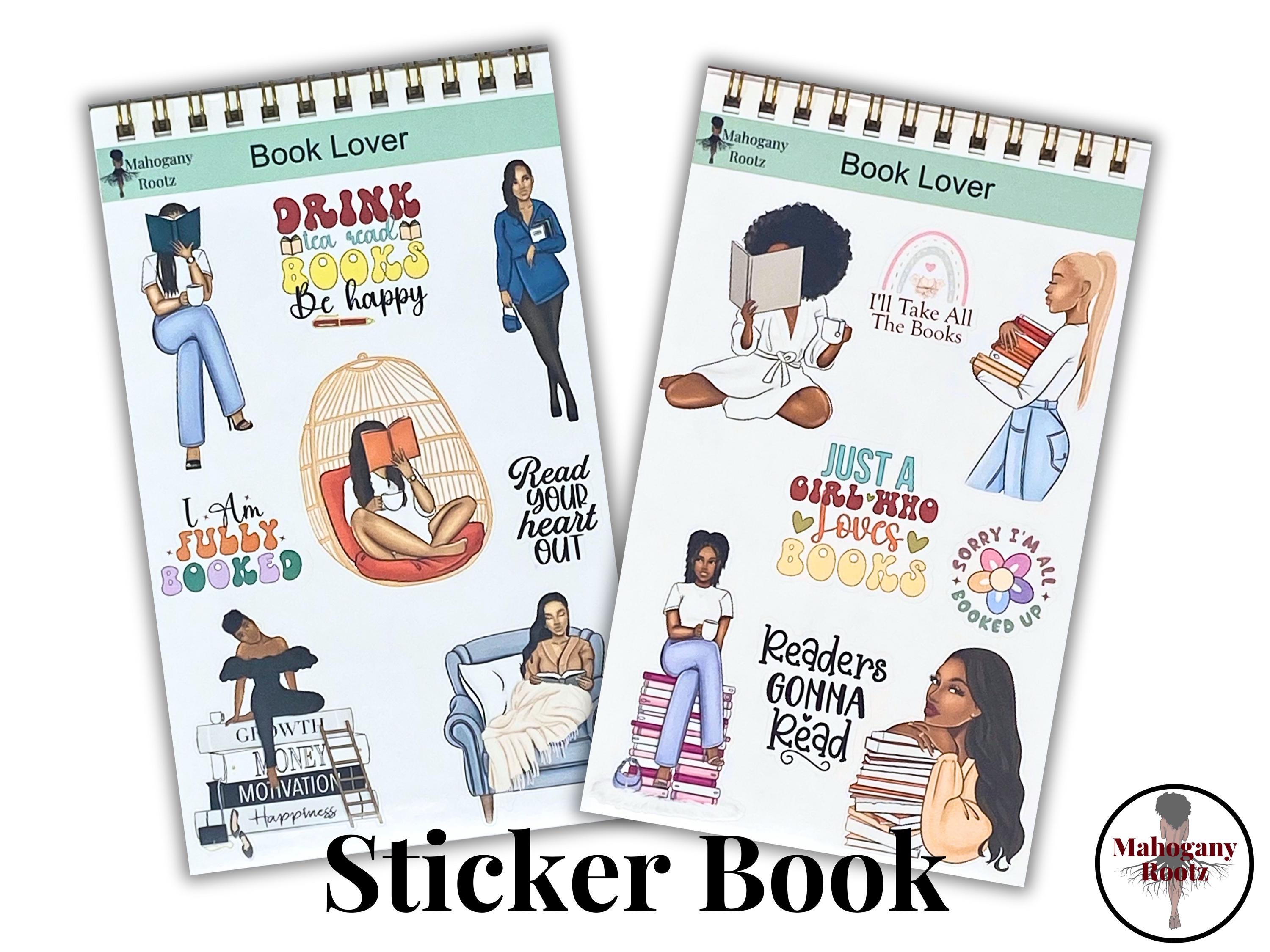 African American "Love to Read" Sticker Book. Have fun with this Book Lovers Sticker Book! It's compact enough to take it on the go with you. Use these stickers for planners, journals, laptop decals, notebooks, vision boards and so much more all while rocking your brown girl style! Also, a perfect gift for the reader in your life.