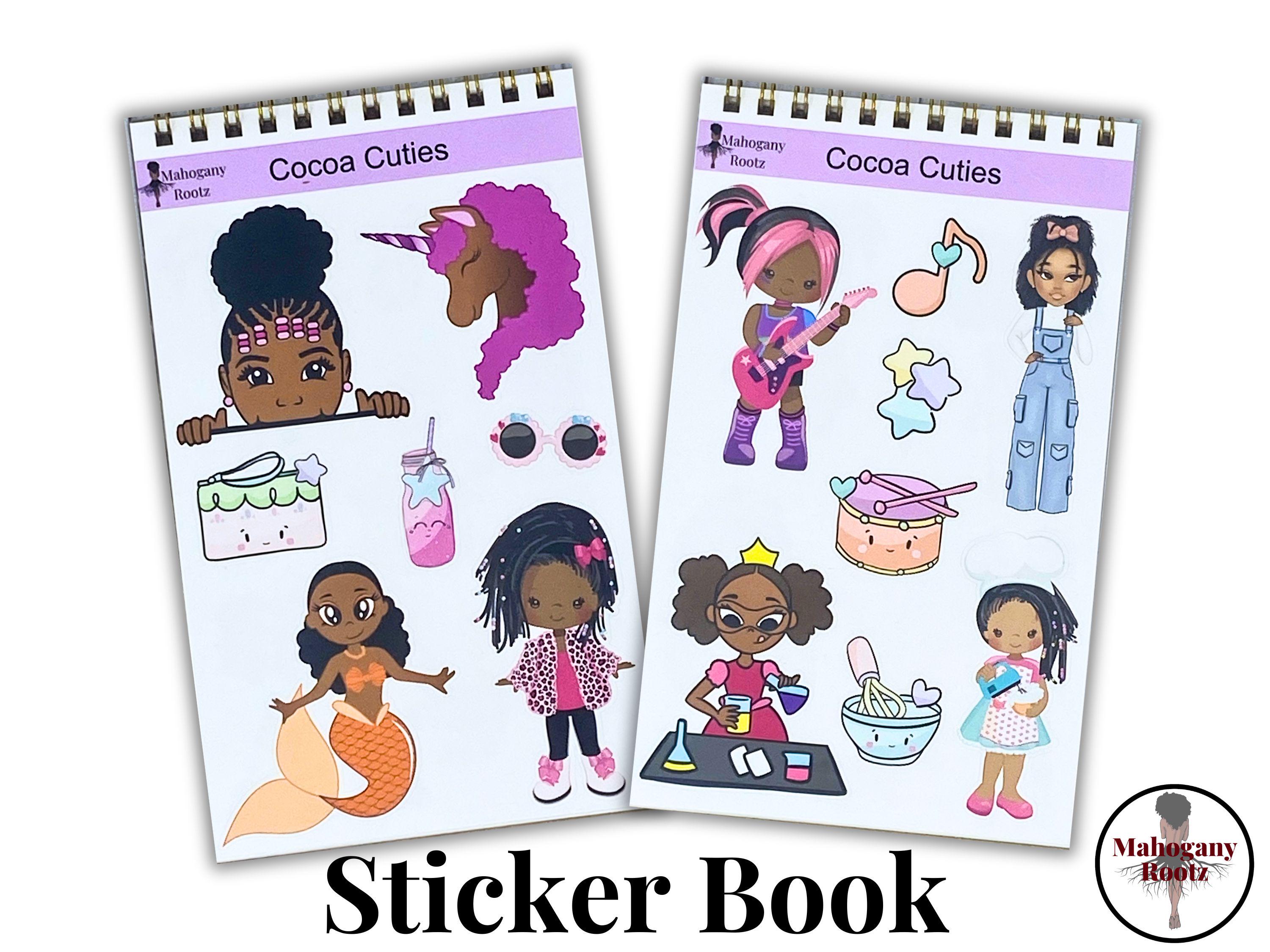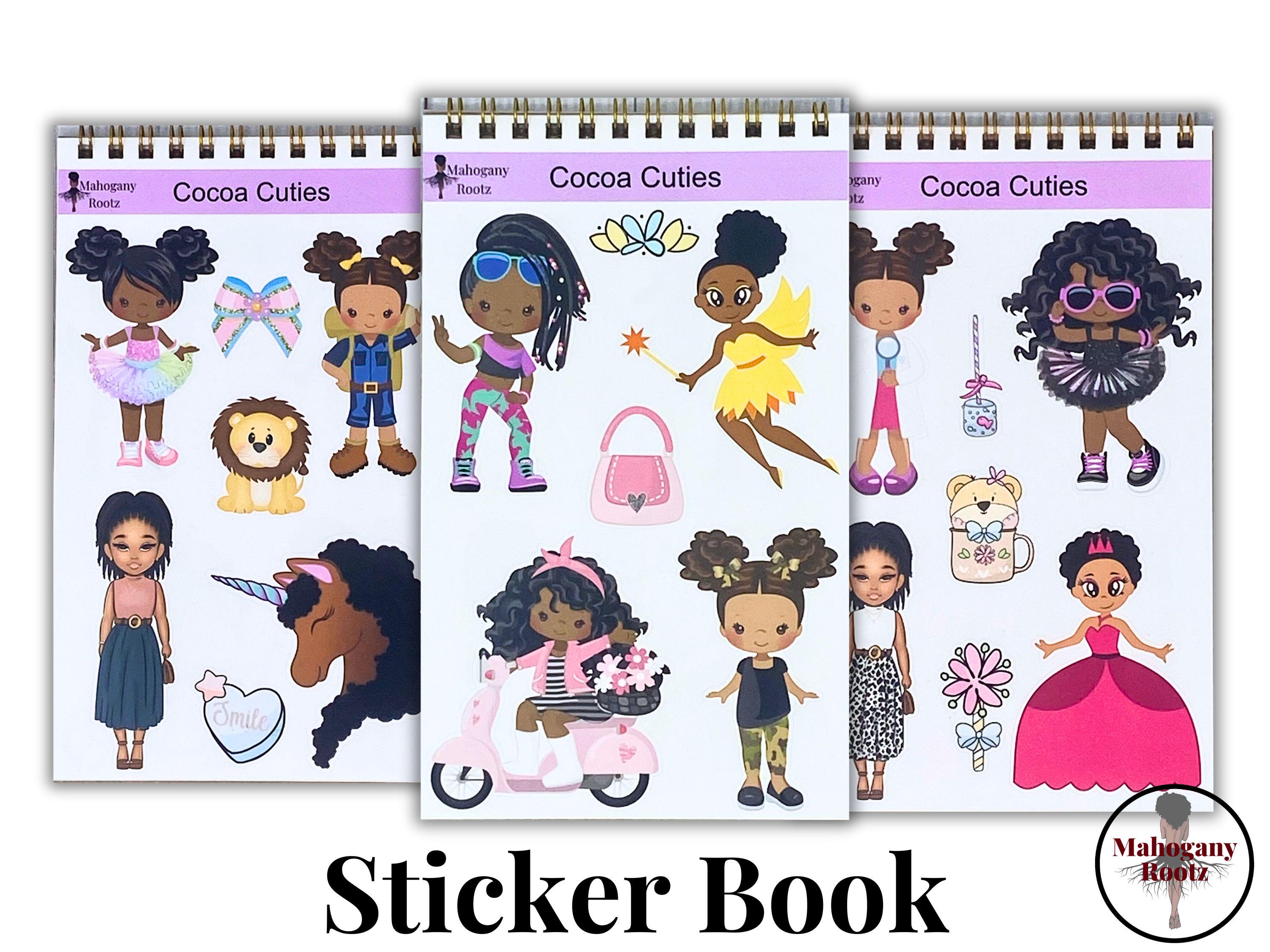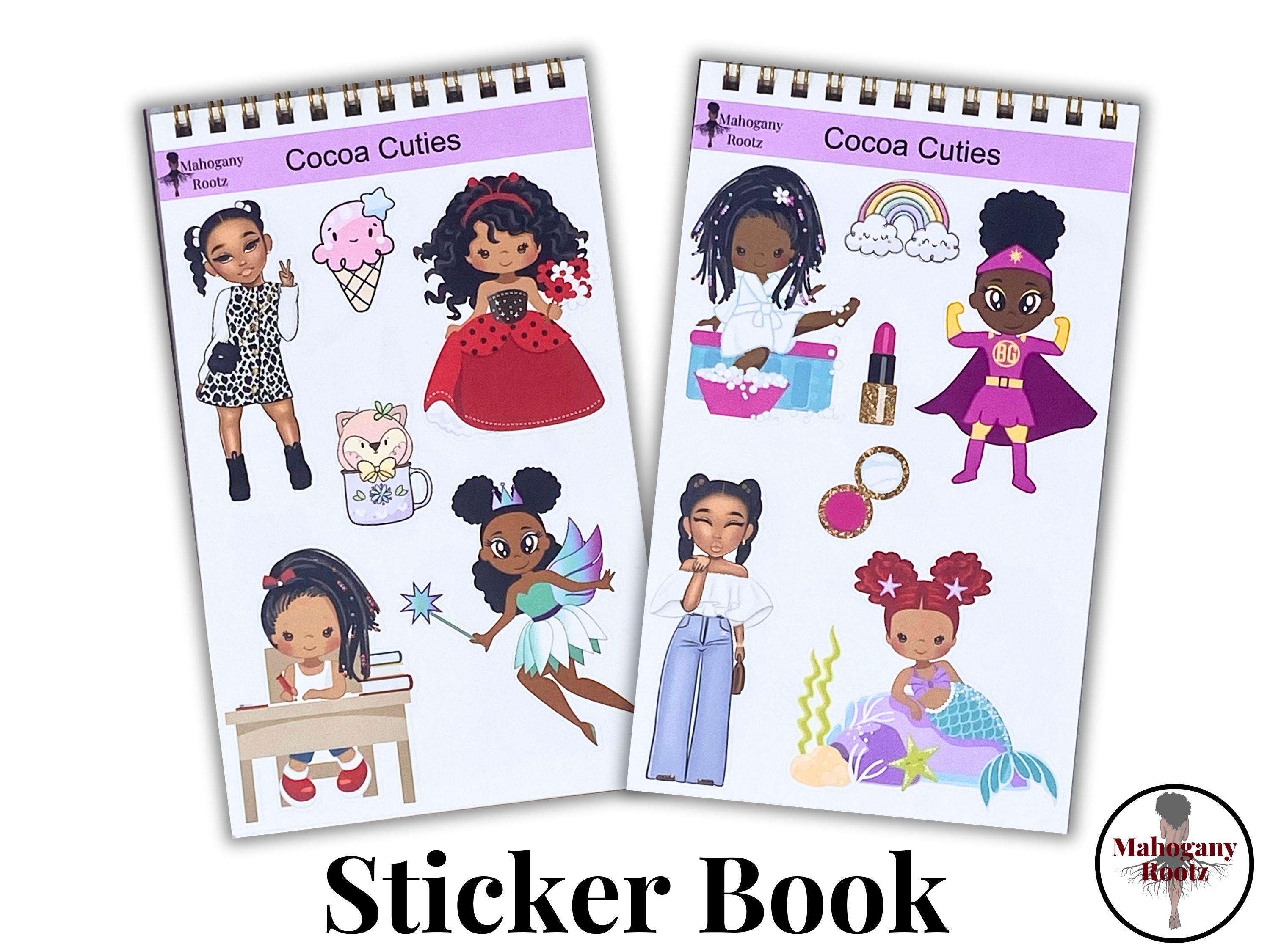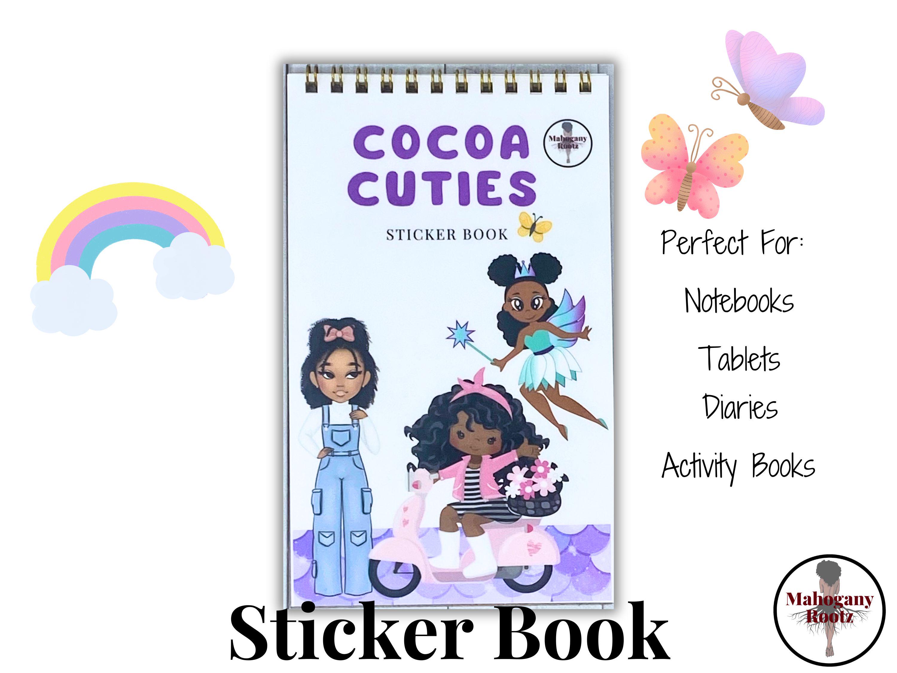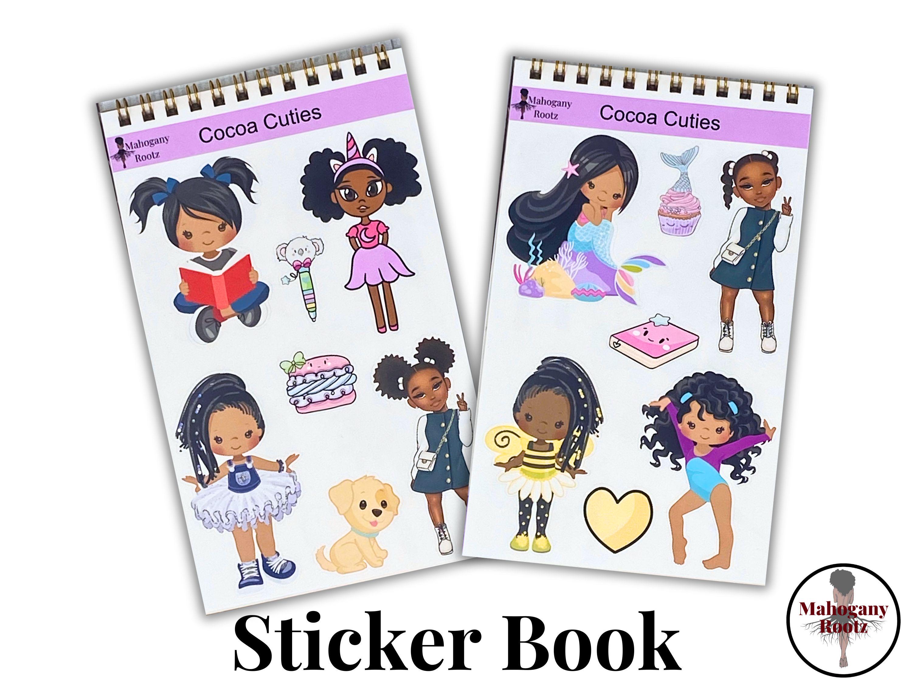 Cocoa Cuties Sticker Book for all the beautiful brown girls in your life. They will have fun decorating their books with images that look like them. Representation matters! Use them for journals, laptop decals, notebooks, tablets and so much more!