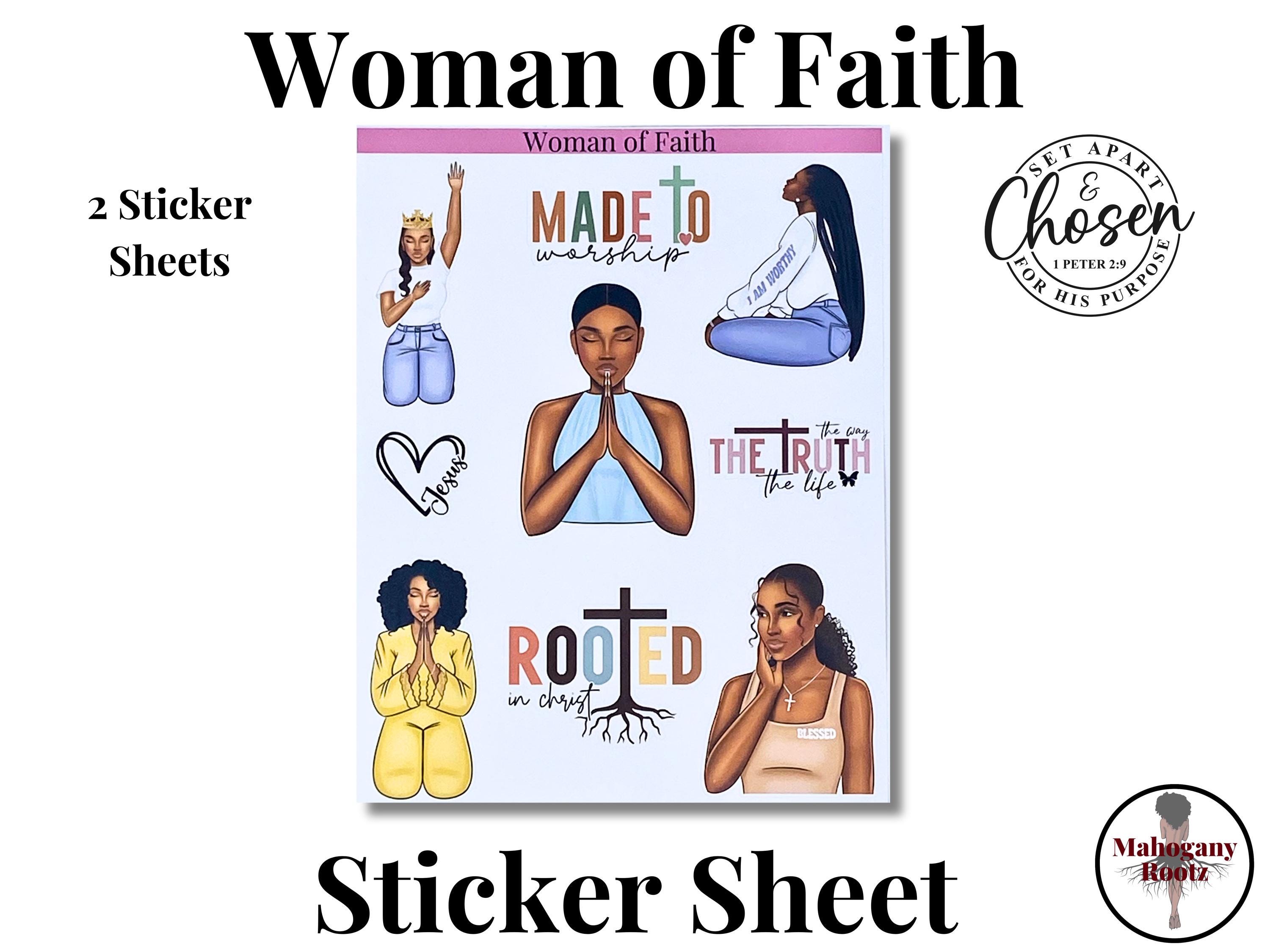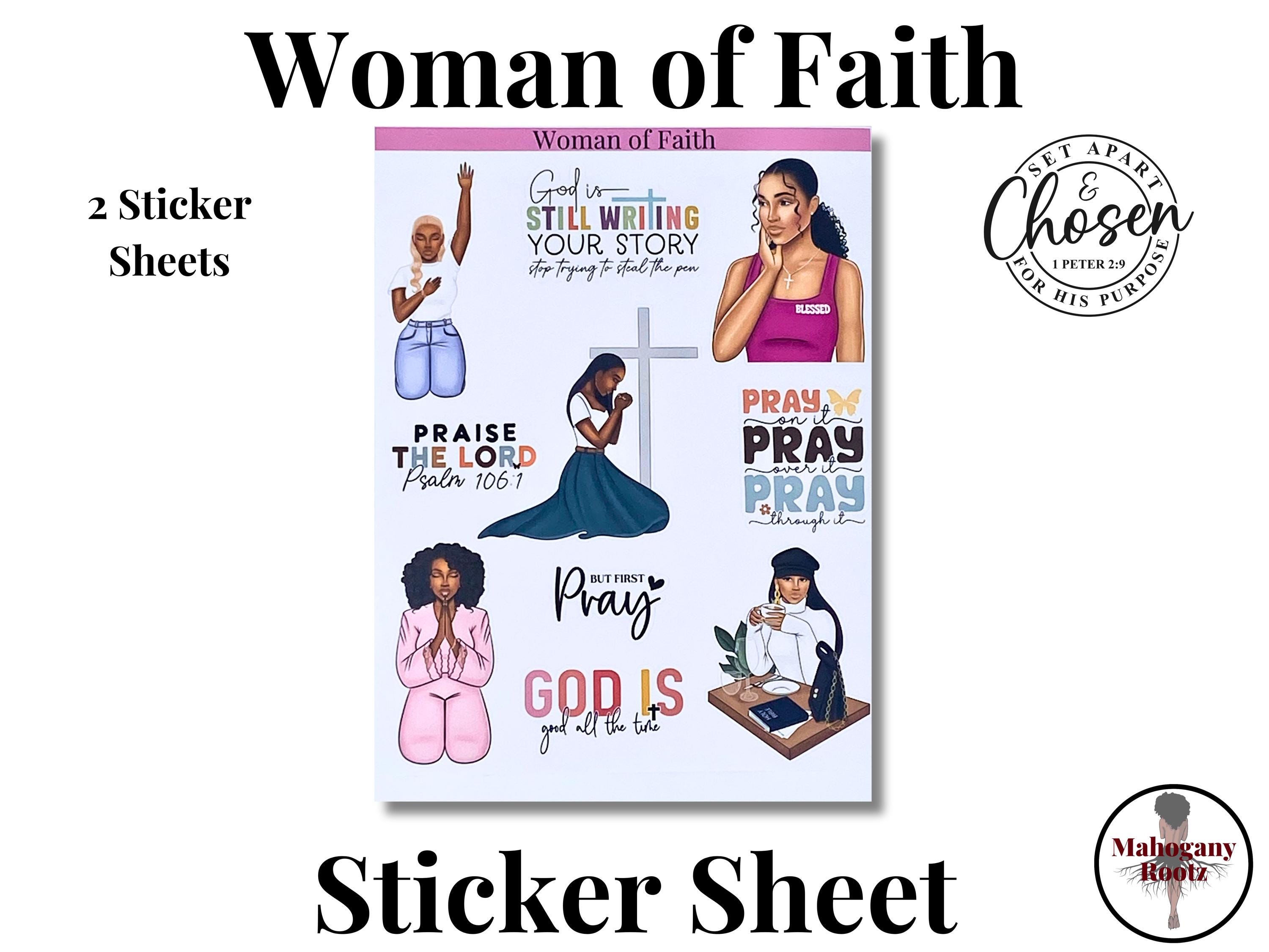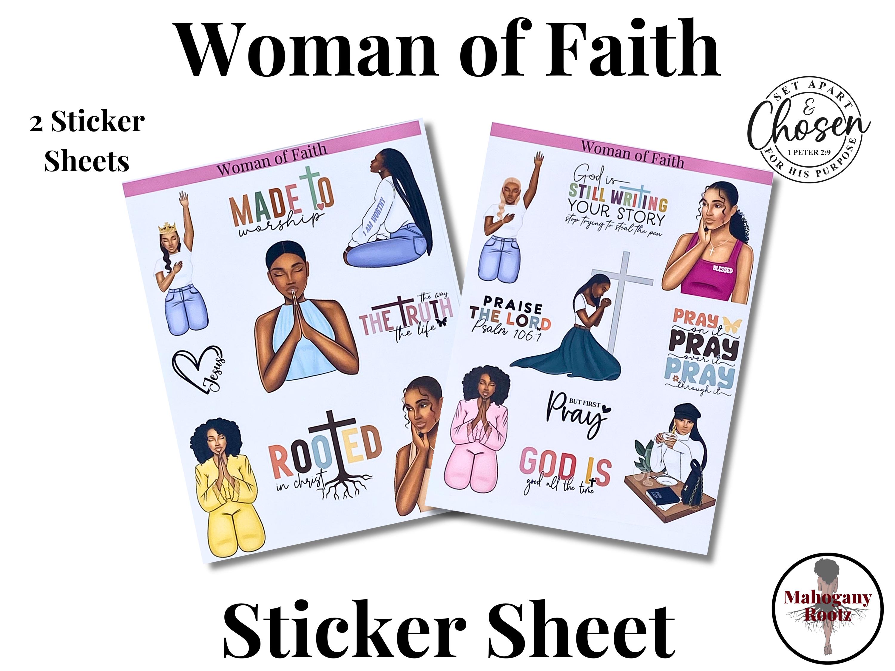 African American Woman of Faith Stickers. Represent your faith and your culture with these Afrocentric stickers! Use them for journals, planners, laptop decals, notebooks, vision boards and so much more!